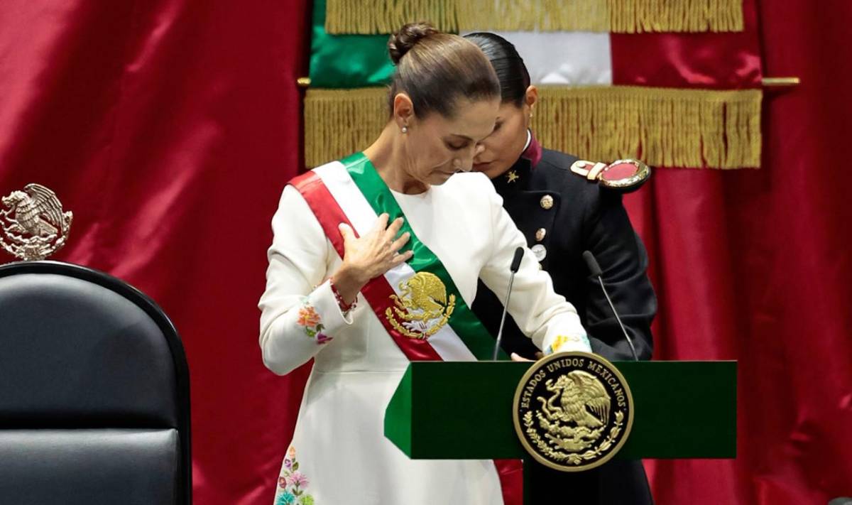 El mandatario saliente, Andrés Manuel López Obrador (2018-2024), entregó la banda presidencial a la presidenta de la Cámara de Diputados, Ifigenia Martínez, quien colocó la prenda tricolor a Sheinbaum, la primera mujer que gobernará el país tras más de sus 200 años de ser república.