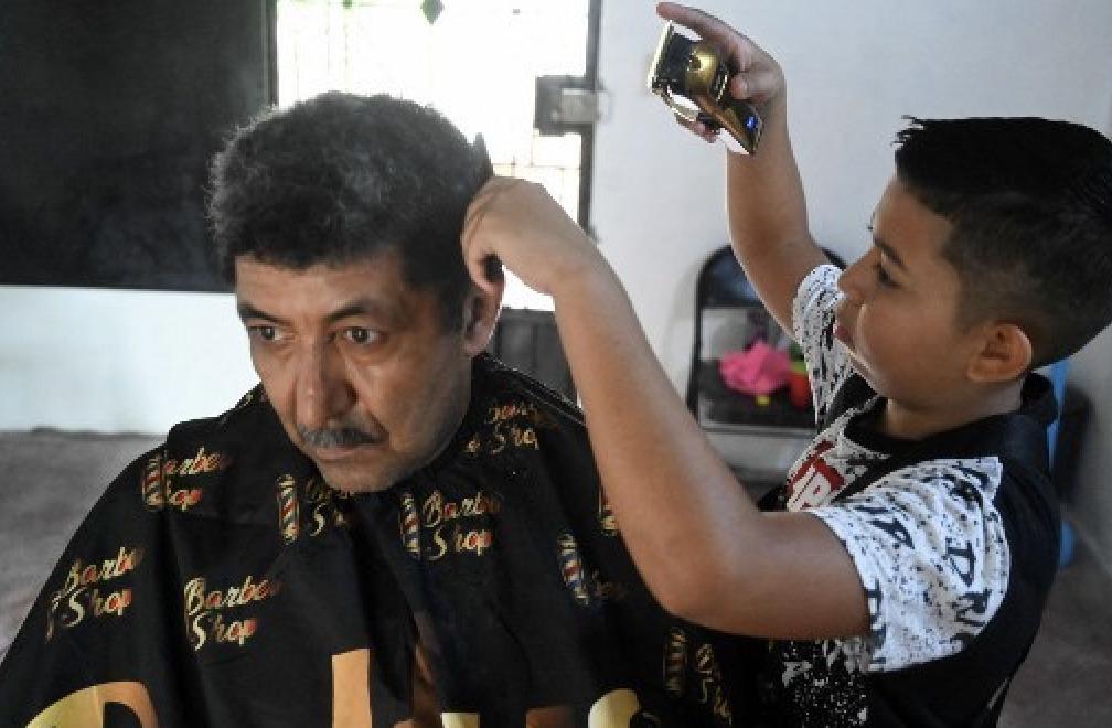 Eduardo trabajó un año como aprendiz, hasta que hace poco más de un mes dijo: “Papi, yo ya puedo cortar, yo quiero que me compre una silla”, contó a la AFP su padre.