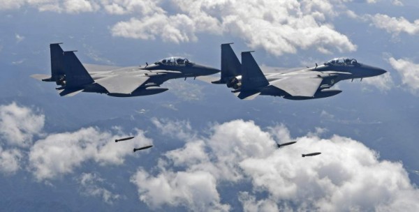 Los aviones estadounidenses volaron junto a cuatro aparatos surcoreanos F-15, lo que forma parte de la 'rutina' en las maniobras militares conjuntas de los dos países, precisa sin embargo el ministerio.