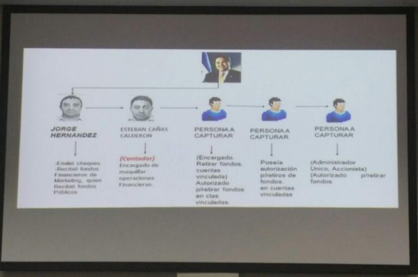 De acuerdo al fiscal general Douglas Meléndez, Hernández está involucrado en una red que llevó a cabo una 'extracción y posterior distracción de fondos públicos por un orden de US$8,1 millones' en momentos en que Saca era presidente.