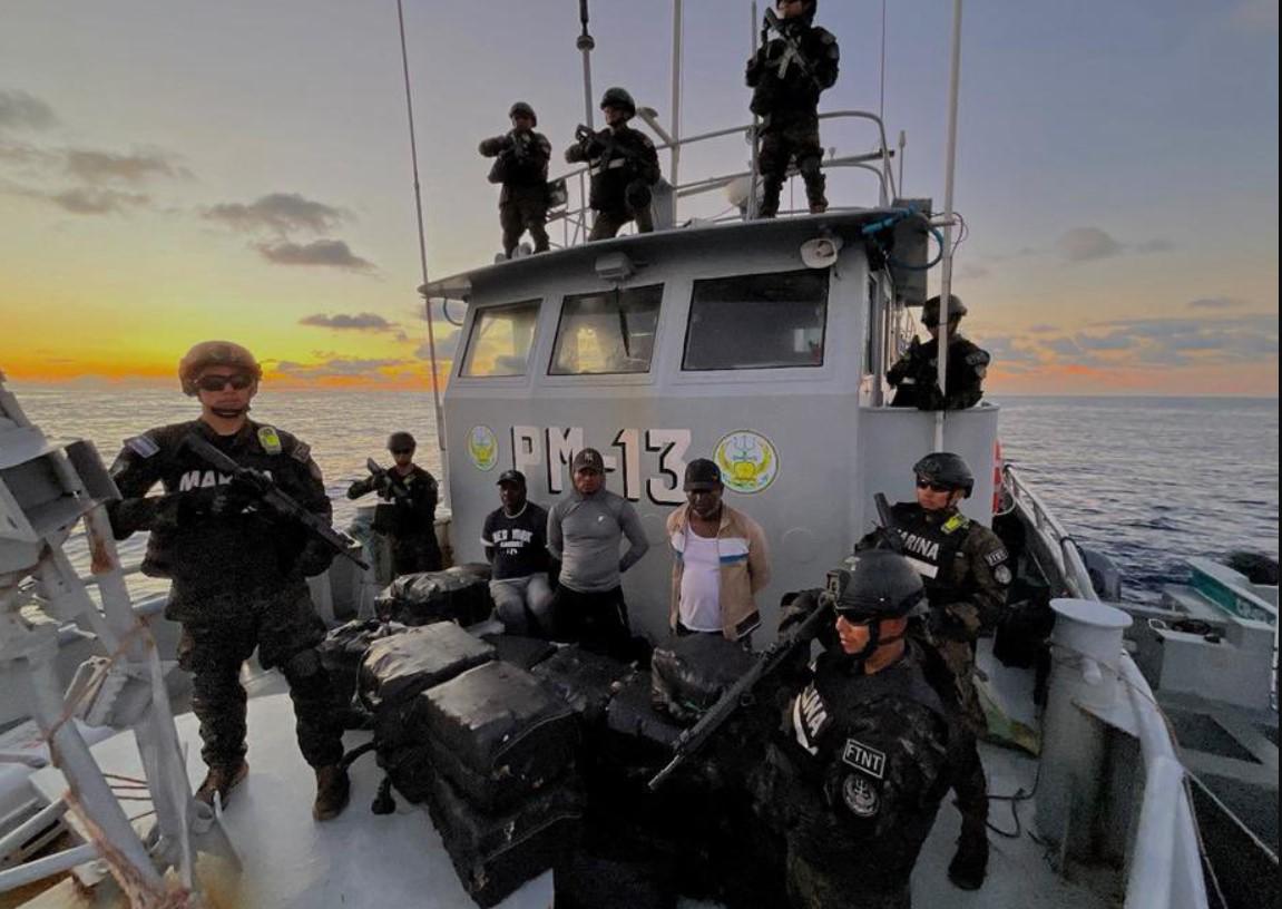 "Nuestra Marina Nacional acaba de incautar una embarcación a 880 millas náuticas (1.600 kilómetros) al suroeste de la Bocana El Cordoncillo, este de Jaltepeque" y "se estima que transportaba 1,3 toneladas de cocaína", escribió el gobernante en la red social X.
