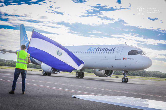 La aerolínea canadiense Air Transt aterizó su primer vuelo al Aeropuerto Internacional de El Salvador “San Óscar Arnulfo Romero y Galdámez”.