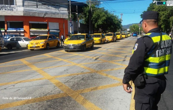 Los taxistas se apostaron desde horas de la madrugada con sus automóviles de color amarillo en las calles que rodean la plaza Salvador del Mundo, en el oeste de la capital, desde donde partieron en caravana a la céntrica sede del Congreso.