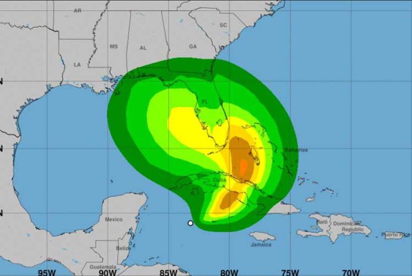 El NHC prevé también 'vientos dañinos de la fuerza de una tormenta tropical el domingo por la noche, con posibilidad de vientos de la fuerza de un huracán, en los cayos de Florida y partes de la península de Florida del sur'.