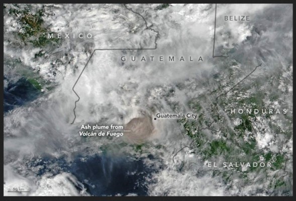 Según el artículo A Deadly Eruption Rocks Guatemala, publicado por el Observatorio de la tierra de la NASA, el Volcán de Fuego expulsó el pasado fin de semana la carga de sulfuro más grande en la era satelital, envió una mezcla de cenizas, fragmentos de rocas y gases mortales.