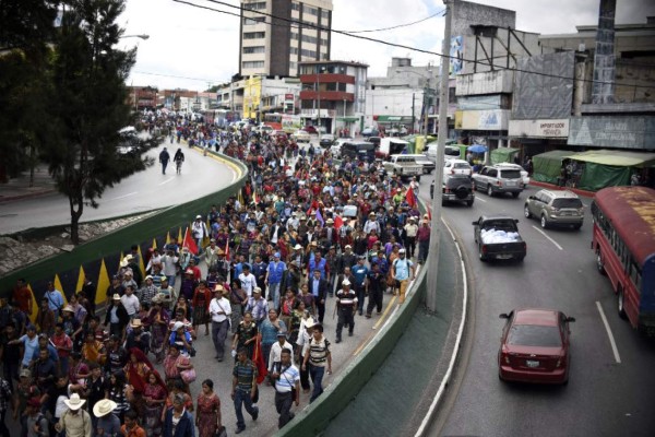 Miles de estudiantes universitarios e integrantes de colectivos sociales e indígenas de Guatemala protestaron este jueves en la capital en reclamo de la renuncia del presidente Jimmy Morales, salpicado desde agosto en un caso de corrupción electoral.