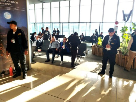 La PDH ha dado acompañamiento al investigador, quien desde anoche permanece en las sillas de espera para abordaje, aseguran que no ha podido dormir y que la aerolínea le proporcionó comida.