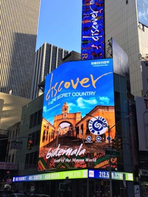 A través de la agencia de publicidad US Media, INGUAT expone los atractivos del país con una inversión que ronda los US$57.000 para este medio. Se estima que el alcance de exposición durante las 4 semanas en la Gran Manzana, supere los 2 millones 552 mil vistas de transito por el lugar.