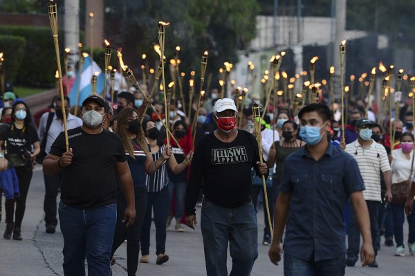 'Fuera ZEDE, fuera JOH', en alusión a las iniciales del presidente Juan Orlando Hernández, gritaron este viernes unas 200 personas que manifestaron protegidas con mascarillas y blandiendo antorchas encendidas por el bulevar Miraflores, este de la capital.