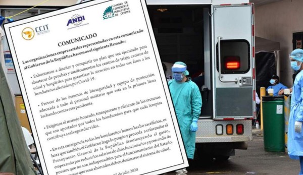 En un comunicado la Cámara de Comercio e Industrias de Cortés (CCIC), la Cámara de Comercio e Industrias de Tegucigalpa (CCIT) y la la Asociación de Nacional de Industriales de Honduras (Andi) pidieron que los recursos que sean ahorrados deben destinarse al sistema de salud.