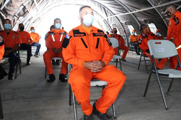 Barahona, a quienes sus compañeros llaman también con aprecio "Bebo", como le decía su madre desde niño, recibió una placa de reconocimiento por el valor demostrado al auxiliar a otros afectados por los fenómenos naturales y las intensas lluvias en su país, y en medio de la pandemia del COVID-19.