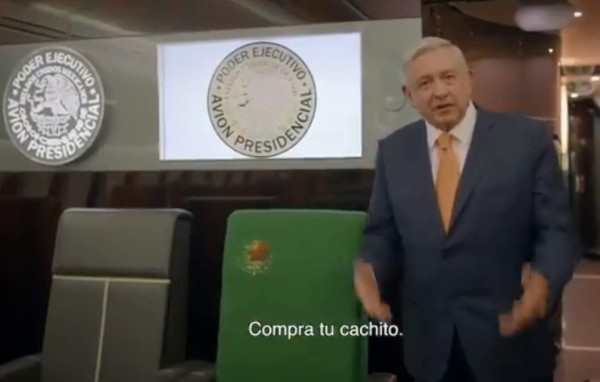 'Compra tu cachito (boleto), hagamos historia', remata AMLO sonriente, mientras levanta la mano derecha con el pulgar alzado.