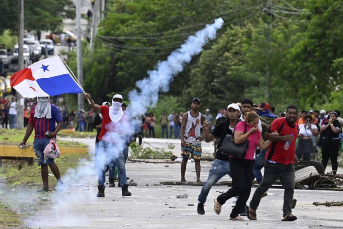 Policías panameños lanzaron gases lacrimógenos para dispersar a manifestantes que bloquearon este lunes calles de la capital y otras regiones en rechazo a un contrato que permite a la compañía canadiense First Quantum Minerals operar en el país la mina de cobre más grande de Centroamérica.