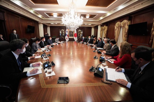 El presidente de Panamá, Laurentino Cortizo Cohen, sostuvo una reunión con el canciller de Japón, Toshimitsu Motegi, en el palacio presidencial, en la que se abordaron temas relacionados con el Canal de Panamá, el incremento de la relación comercial, el interés de la inversión nipona en el país, las donaciones para aliviar la pandemia, los juegos olímpicos de Tokio y asuntos regionales.