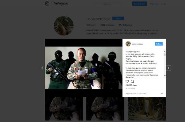 En cinco videos, divulgados en Instagram, Pérez exigía a Maduro su 'renuncia inmediata'. A la vez, fotos y videos del helicóptero en vuelo se volvían virales con rapidez en las redes sociales.