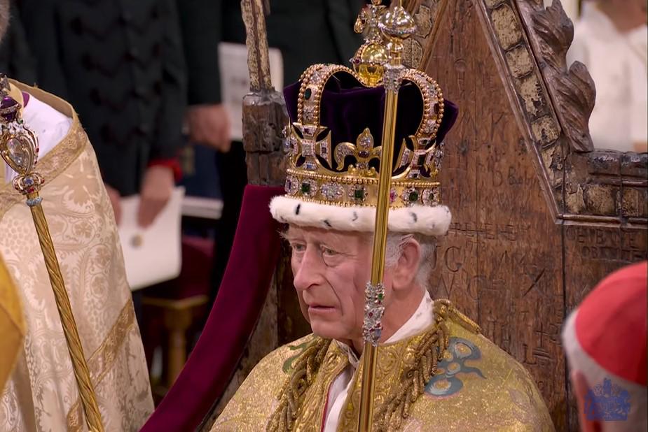 El arzobispo de Canterbury, Justin Welby, líder espiritual de la Iglesia de Inglaterra, colocó sobre la cabeza del monarca de 74 años la corona de San Eduardo, que no se había utilizado desde la coronación en 1953 de su madre, fallecida en septiembre.