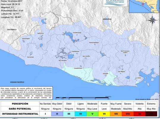 El sismo fue sensible a la población en los occidentales departamentos de Sonsonate, Ahuachapán, Santa Ana, así como en los centrales de La Libertad, La Paz, San Vicente y San Salvador, y en los orientales de Usulután, San Miguel y La Unión, según reportes de cuerpos de socorro.