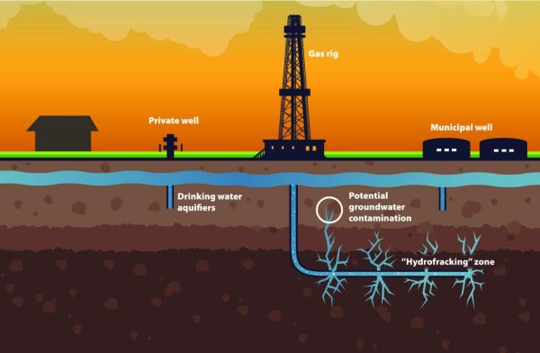 Una fuente de aguas negras proviene de la fractura hidráulica o del método conocido como fracking, que utiliza agua con arena y productos químicos en partes profundas de la tierra para abrir formaciones de roca y extraer aceite y gas natural.