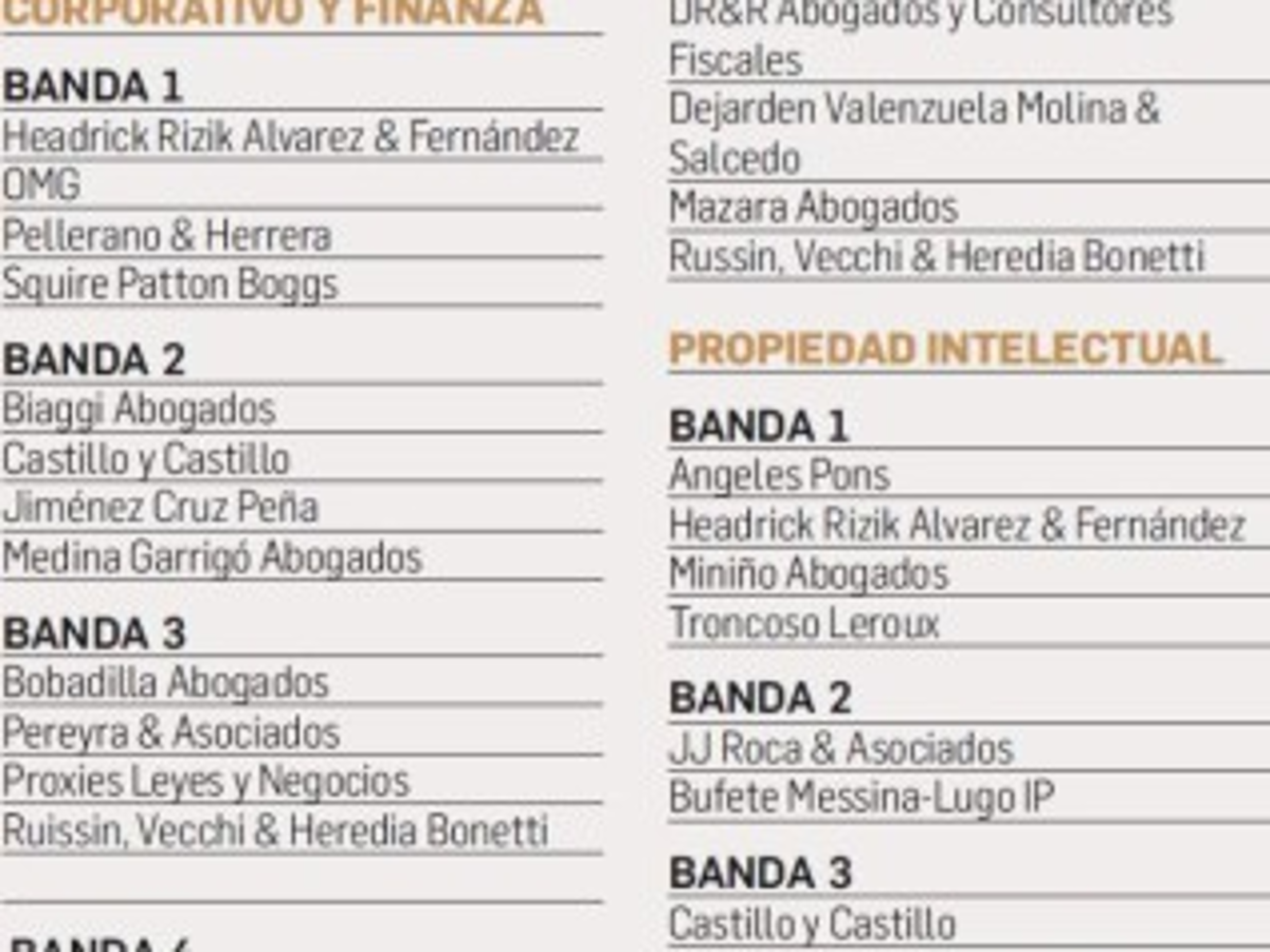 En esta Guía de Bufetes 2018, E&N presenta el Ranking de las firmas legales líderes de Centroamérica, Panamá y República Dominicana, elaborado por el prestigioso directorio internacional The Legal 500, en su edición Latin America 2018.Esta edición del Ranking 2018 de The Legal 500 para Centroamérica, Panamá y República Dominicana, destaca a más de 114 firmas legales, que sobresalen en diversas categorías y áreas de práctica.