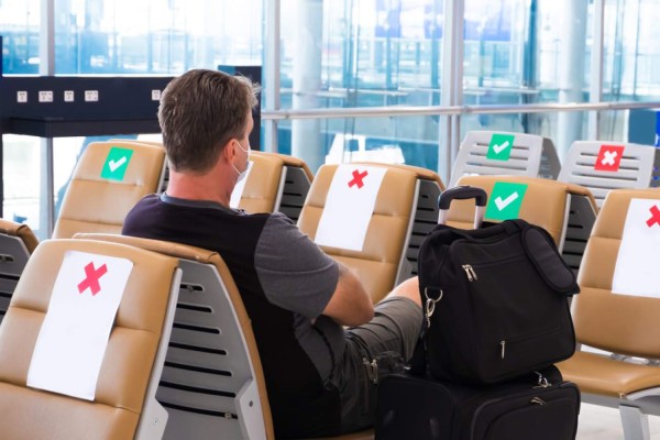 Distanciamiento social: Los gobiernos aconsejan usar mascarilla (o cubrirse la cara) cuando no sea posible el distanciamiento social, como en el caso del transporte público, una medida en línea con la guía Take-off (Despegue), de la OACI. No obstante, a pesar de la cercanía de los pasajeros a bordo, el flujo del aire en cabina es de arriba a abajo, lo que limita la posible propagación de virus o gérmenes hacia atrás o hacia adelante. Existen otras barreras naturales para la transmisión de virus a bordo que limitan el contagio, como la orientación hacia adelante de los pasajeros (que limita la interacción cara a cara), los respaldos de los asientos (que limitan la transmisión entre filas) y la limitación de movimiento de los pasajeros en cabina.
