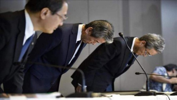 Hisao Tanaka, director ejecutivo de Toshiba, hizo una reverencia de 15 segundos el martes en ocasión de su renuncia debido a un escándalo contable de US$1,2 mil millones. Tanaka y otros siete ejecutivos asumieron la responsabilidad de los engaños que comenzaron en 2008. Taro Aso, ministro de finanzas de Japón, advirtió que esto podría ocasionar una 'pérdida de confianza por parte del mercado'.