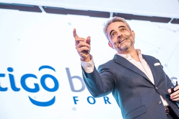 Durante su presentación en el Tigo Business Forum 2019, sobre transformación digital, señaló cómo en la actualidad las grandes empresas a las que denominó "gigantismo empresarial" ocupan espacios con los cuales no se puede competir, pero tiene un gran valor utilizar los insumos que éstas proporcionan en favor de las pequeñas empresas.