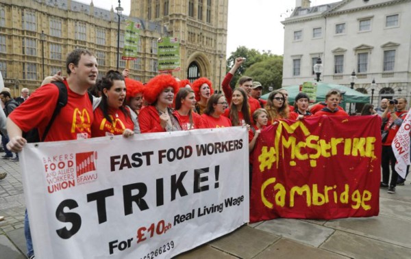 Los empleados de la cadena de comida rápida estadounidense McDonald’s protagonizaron hoy la primera huelga de su historia en el Reino Unido para reclamar un aumento de salario y mejores condiciones de trabajo.