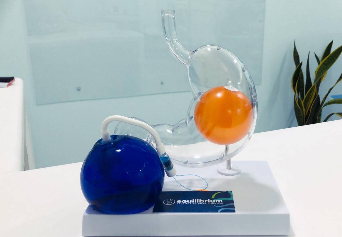 El balón intragástrico es un procedimiento mínimamente invasivo que se realiza por medio de una endoscopía, que consiste en introducir en el estómago un balón de silicona, que se inflará con determinada cantidad de líquido, de tal forma que ocupe la mitad del tamaño del estómago.