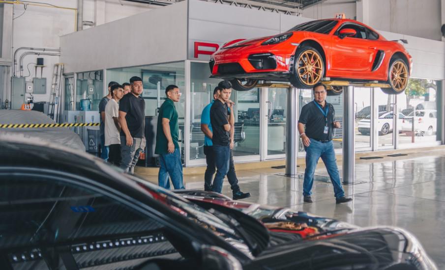 El taller automotriz de Porsche Center El Salvador recibió a jóvenes que culminaron sus estudios en mecánica gracias a la alianza establecida entre la marca y TECHO El Salvador.