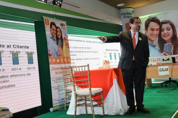 Al respecto, señaló que año con año se incrementa el peso de las transacciones bancarias a través de los canales alternos de Banpro, prueba de ello es que en 2013 representaban el 33% y en 2015 aumentó al 40% de las transacciones de Banpro. Eso dijo que contribuye a mejorar la atención en las sucursales físicas.