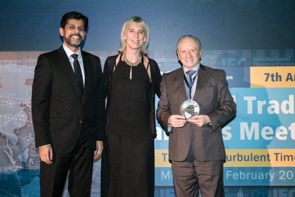 El reconocimiento lo recibió Antonio García de la Peña, Coordinador del Grupo para Relaciones con Instituciones Financieras Internacionales, de manos de Susanne Kavelaar, Senior Trade Finance Officer, Regional Head Latin America de IFC.