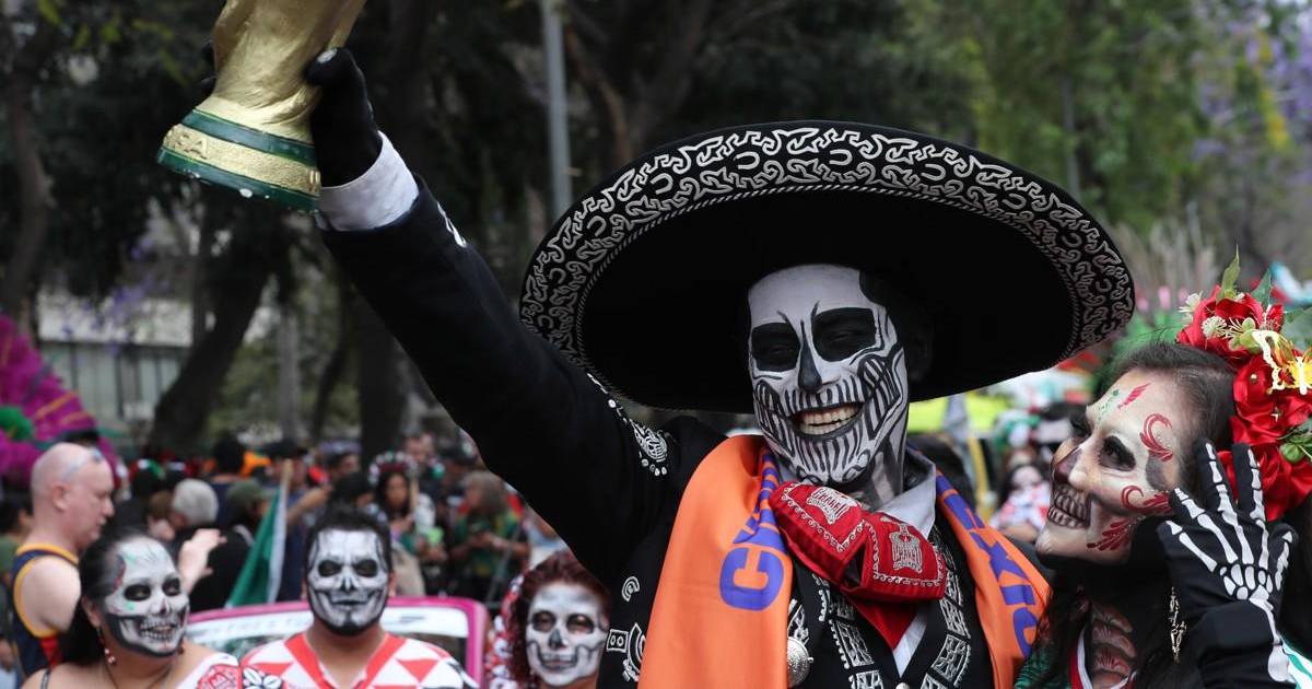 6 / 7Entre carros alegóricos, matracas, silbatos y globos, familias, turistas y curiosos se detenían a admirar los disfraces y otras expresiones creativas, como figuras de cartón del trofeo mundialista y calaveras con camisetas futboleras. EFE/ Mario Guzmán