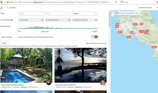 En Costa Rica hay 6.600 anfitriones que ofrecen 11.000 espacios; la tasa de ocupación es de 27 días por año y los sitios que más se cotizan están en Puntarenas, Guanacaste y San José.