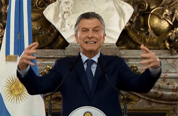 En su discurso, Macri lamentó gravar las exportaciones. 'Sabemos que es un impuesto malo, malísimo, pero les tengo que pedir que entiendan que es una emergencia', dijo.