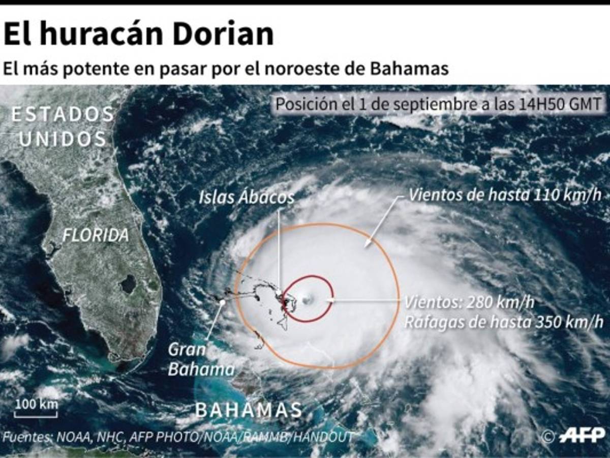 Dorian se abatió sobre las islas Bahamas al mediodía de este domingo con vientos cercanos a los 300 km/h, anunció el Centro Nacional de Huracanes (NHC) citando 'condiciones catastróficas' en el noroeste del archipiélago.
