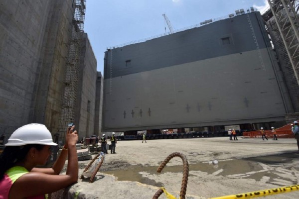 A un ritmo muy lento y en cuatro carritos de 480 ruedas, capaces de soportar hasta 10 toneladas cada una, fue instalada la compuerta en las nuevas esclusas del Pacífico.