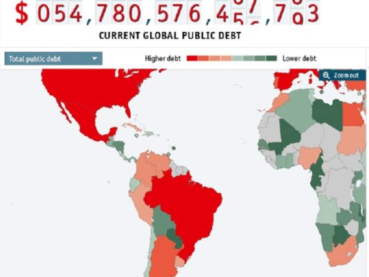 El 'reloj' de la deuda pública mundial llega a una cifra superior a US$54 billones (millones de millones), lo que representa US$7.700 por cada habitante del planeta, algo dramático si consideramos que el 40% de la población mundial vive con menos de 2 dólares diarios.