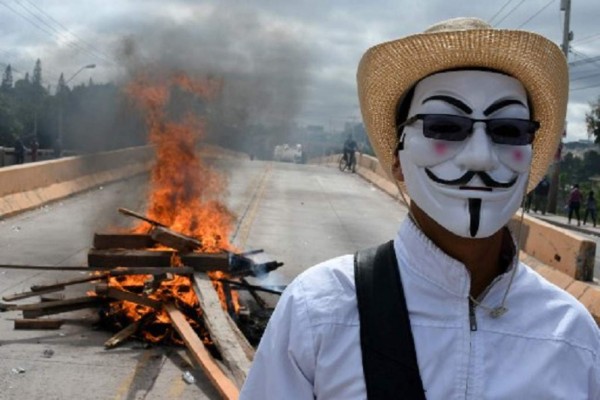 Entre los violentos manifestantes que portan combustible, piedras y armas de fabricación casera, conocidas como "chimbas", se encuentran integrantes del Movimiento Estudiantil Universitario (MEU)