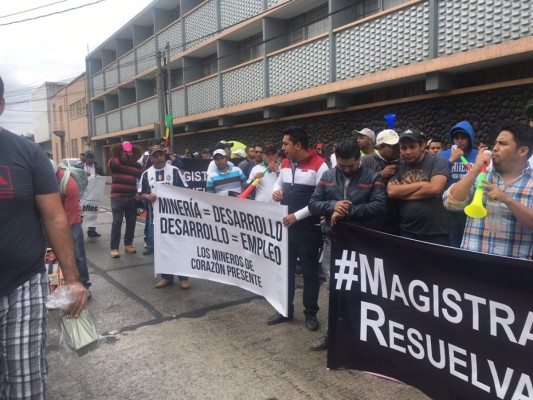 'Minería = Desarrollo' y 'Resuelvan Ya', señalaban algunas pancartas sostenidas por los manifestantes frente a la sede de la CC, máxima instancia judicial del país.