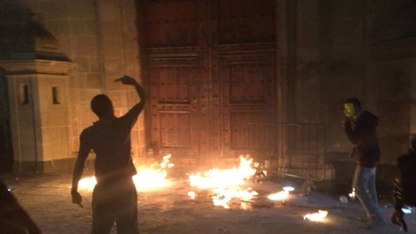 Los manifestantes, la mayoría con el rostro oculto con pañuelos, lanzaron piedras y cócteles molotov contra la sede gubernamental, que se encontraba cerrada. También incendiaron una decena de vehículos, incluidas camionetas y una patrulla de la policía federal.