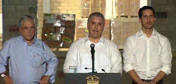 Después de llegar en medio de la multitud en el concierto Venezuela Aid Live que se llevaba a cabo en la frontera entre Colombia y Venezuela, el presidente interino de Venezuela, Juan Guaidó, se pronunció en una rueda de prensa junto con el presidente Colombia, Iván Duque; Sebastián Piñera, presidente de Chile y Mario Abdo Benítez, presidente de Paraguay. Guaidó agradeció a los pueblos del mundo por "haber abierto las puertas de la libertad".