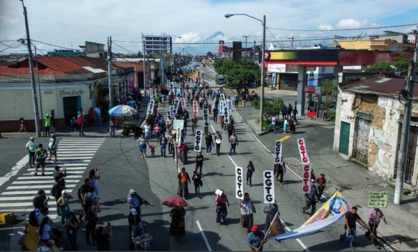 Unos 3.000 guatemaltecos marcharon el domingo para exigir mejoras laborales y criticar a los tres poderes del Estado al conmemorar el 75 aniversario de la Revolución de Octubre de 1944, que dejó beneficios sociales y democráticos.