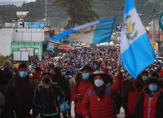 Los manifestantes exigen se manifiestan contra la corrupción; además, exigen la renuncia del presidente Alejandro Giammattei y la fiscal general del Ministerio Público (MP), Consuelo Porras.