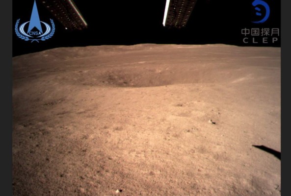 Chang'e-4 -llamado así en honor a la diosa de la Luna en la mitología china- envió una foto de la superficie lunar al satélite Queqiao, en órbita alrededor de la Luna, precisó la televisión pública CCTV.