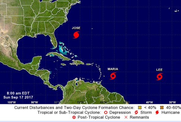 María se desplaza con vientos máximos sostenidos de 50 millas por hora (85 kilómetros por hora) y el CNH pronostica que en el transcurso de los próximos dos días, cuando esté más cerca de las Antillas Menores, se convertirá en un huracán.