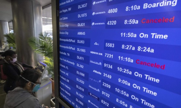 Según el sitio web Flightaware, a las 18H50 GMT del viernes se habían registrado al menos 2.272 cancelaciones de vuelos, de las cuales 585 son viajes vinculados a Estados Unidos, ya sean internacionales o internos.