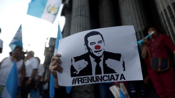 Decenas de indígenas, campesinos y estudiantes salieron a las calles del centro histórico capitalino para demandar la dimisión del presidente, conocido por la mayoría de los guatemaltecos por su pasado como comediante, que ganó las elecciones dos años atrás con la promesa de sepultar a la corrupción rampante en el país.