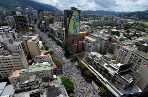 Vestidos de blanco, ondeando banderas de Venezuela, con pancartas que rezan 'Cambio' y 'Revocatorio ya', los opositores se manifiestan en el este de Caracas. 'O salimos a marchar o nos morimos de hambre, el gobierno ya no nos asusta', dijo a la AFP Ana González, de 53 años.