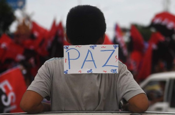'¡Abajo los golpistas!', '¡Ni un paso atrás!', '¡Se queda, mi comandante se queda!, 'Queremos la paz', gritaban los seguidores de Ortega, ondeando banderas del gobernante Frente Sandinista de Liberación Nacional (FSLN, izquierda).