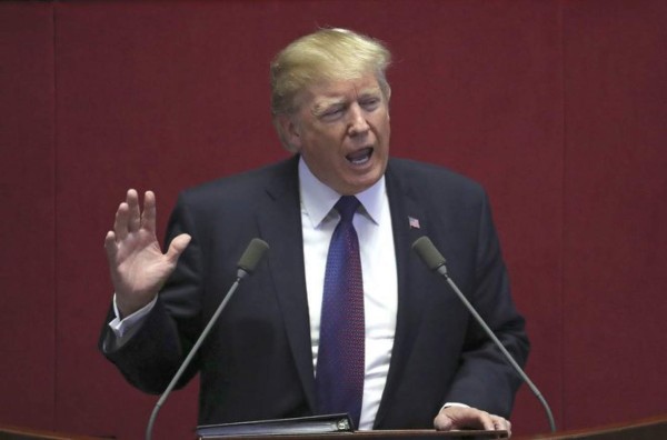 En un discurso pronunciado horas después de que abortó una visita a la fortificada zona desmilitarizada coreana debido a mal clima, Trump exhortó a todas las naciones a unir fuerzas "para aislar al régimen brutal de Corea del Norte; para negarle cualquier forma de apoyo, suministros o aceptación".